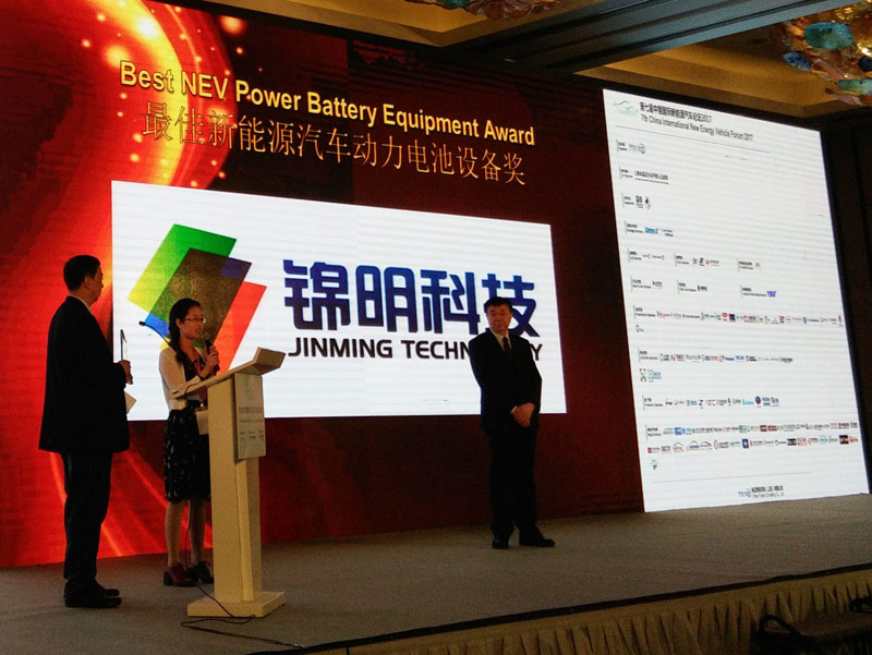 2017年5月17-19日,“第七屆中國*新能源汽車論壇”在上海舉行,在*天的開幕式上,錦明科技被大會組委會授予“*佳新能源汽車動力電池設備獎”,動力電池生產智能化方面的成就再次獲得行業肯定。