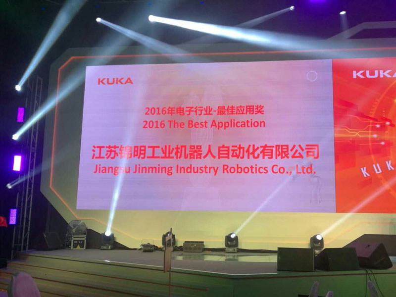 9月27日,KUKA機器人盛大舉行以“眾智齊心,啟鳴未來”為主題的第三屆合作系統伙伴日。江蘇錦明工業機器人自動化有限公司受邀出席活動,并榮獲 “2016年電子行業-*佳應用獎”。